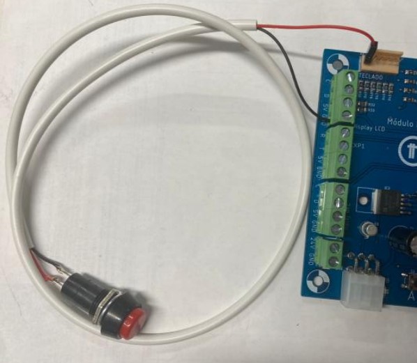 El primer par de izquierda a derecha corresponden a la conexión de la pantalla LCD externa (en caso de requerirse) y a la conexión a tierra del botón de corte por impresora, por lo que al hacer la conexión del botón para hacer corte el cable negro se insertará en la bornera GND y el cable rojo se insertará en el primer pin (contando de izquierda a derecha) del conector de teclado matricial como se muestra en la Figura 4.3.
