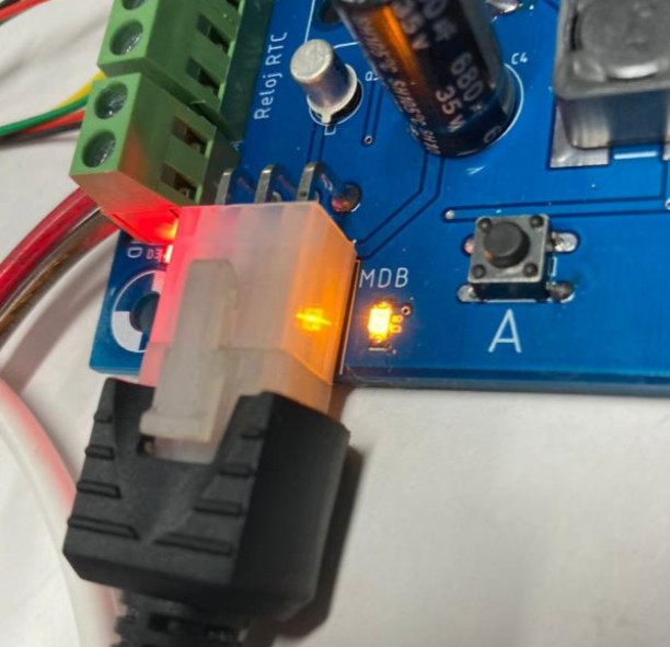 Por último, se tiene una bornera la cual corresponde a la alimentación del MDB Display v1.1 hay que tener en cuenta que el MDB Display v1.1 será energizada con 24 volts y con polaridad las cuales se indican en las borneras 24V corresponderán al positivo y GND al negativo