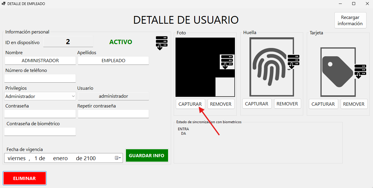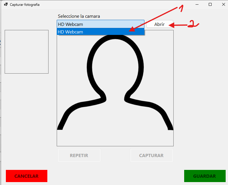Se puede realizar la captura de una foto desde una camara web de la pc, por lo que el proceso es el mismo si tiene instalados los siguientes biometricos.