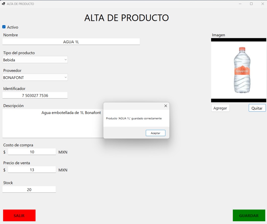 Ilustración 8. Vista ALTA DE PRODUCTO