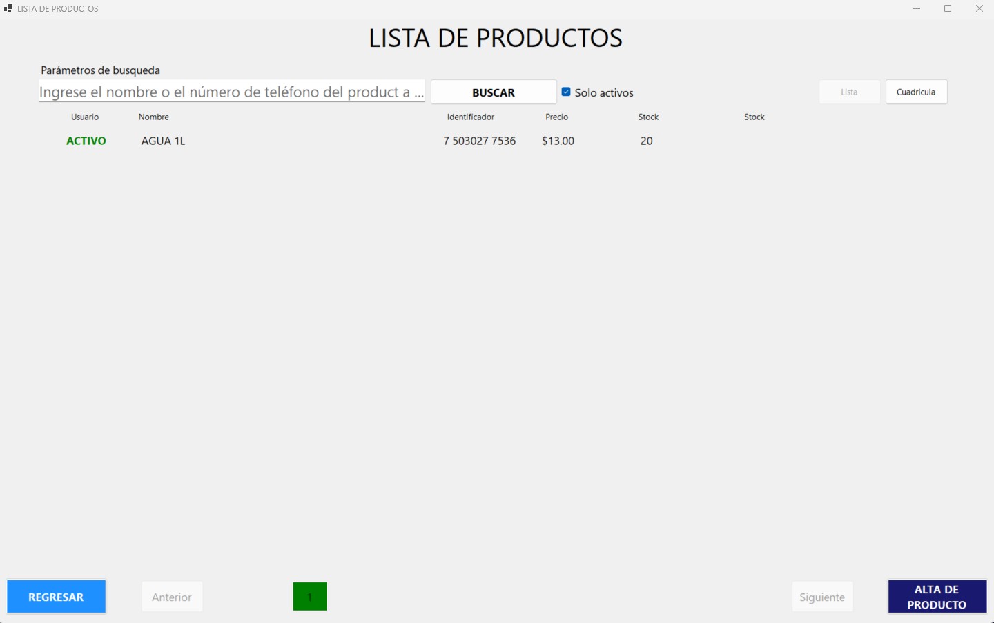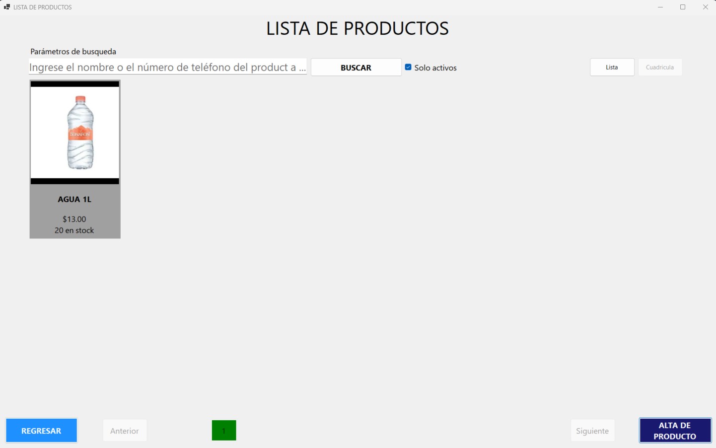 4. Agrega los productos que tengas disponibles en tu gimnasio y verifícalos en la lista de productos, puedes tener la vista en cuadrícula o en lista para ver lo detalles con los botones “LISTA” y “CUADRICULA”.