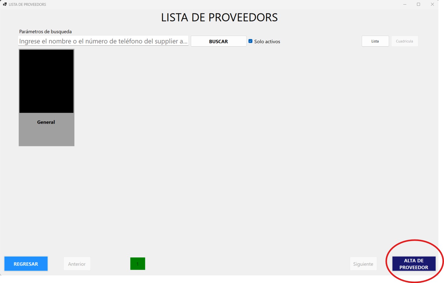 Proveedor. Selecciona el proveedor que guardaste previo al registro del producto.