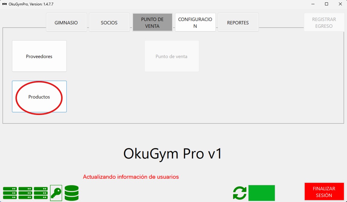 1.En el menú punto de venta selecciona el botón “PRODUCTOS”.