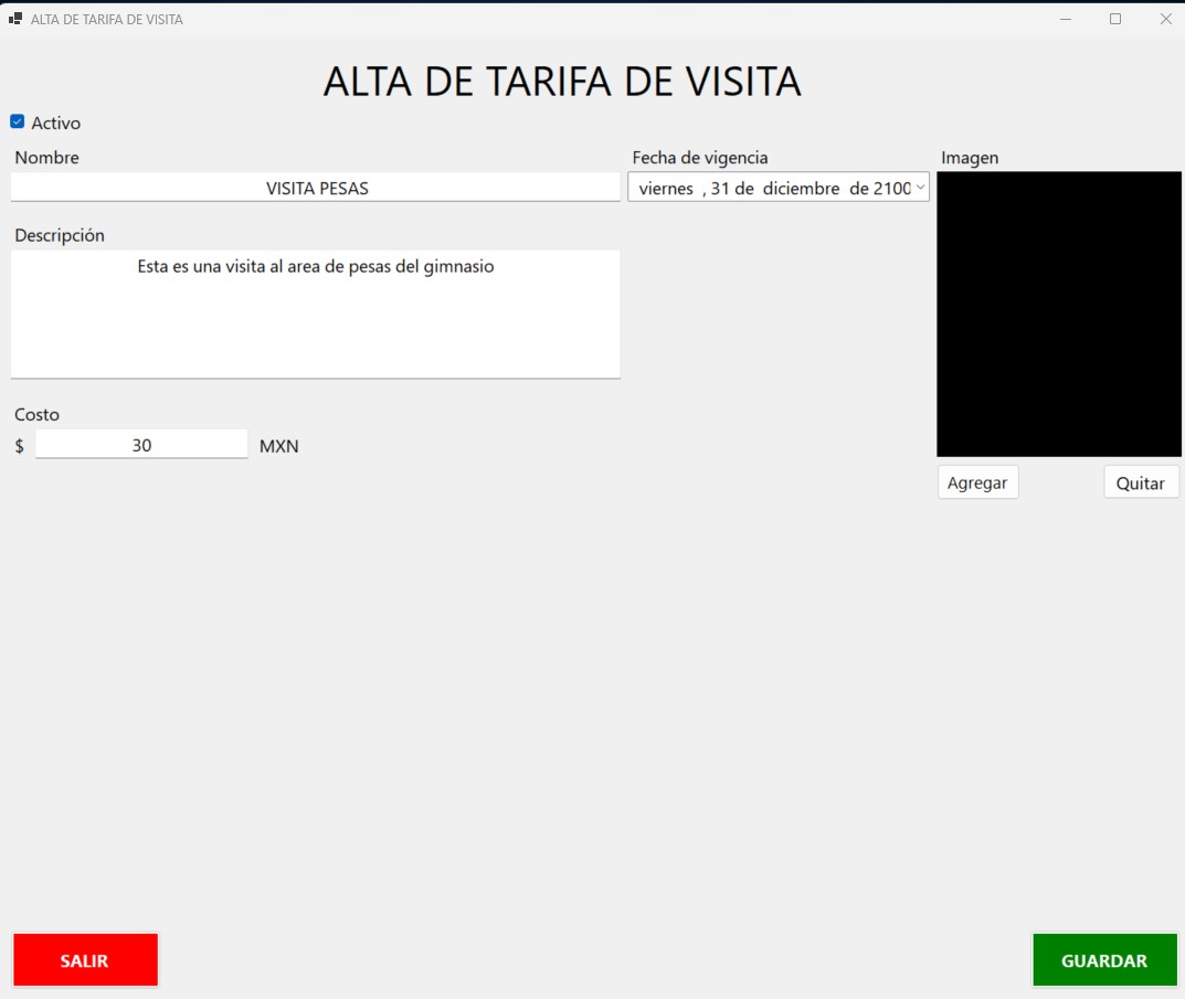 Ilustración 4.Vista MENU GIMNASIO- ver tarifa de visitas