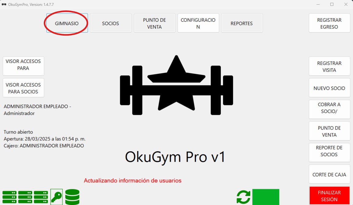En el MENU PRINCIPAL da clic en el botón “GIMNASIO”.