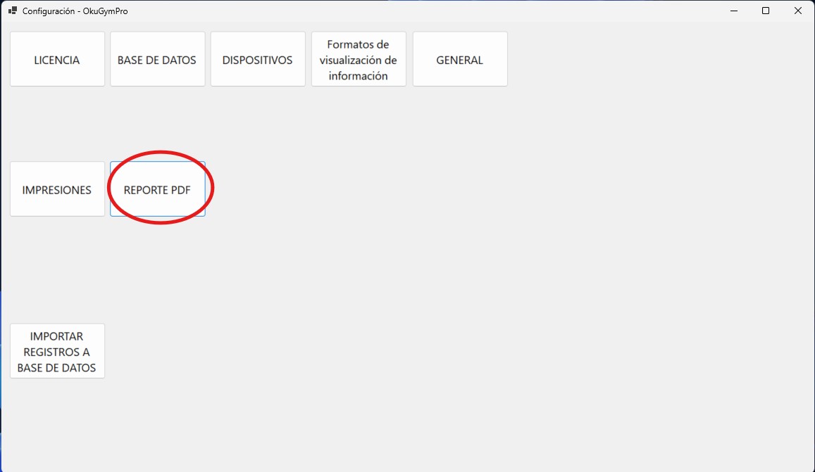 2. En el menú CONFIGURACION da clic en el botón "REPORTE PDF".