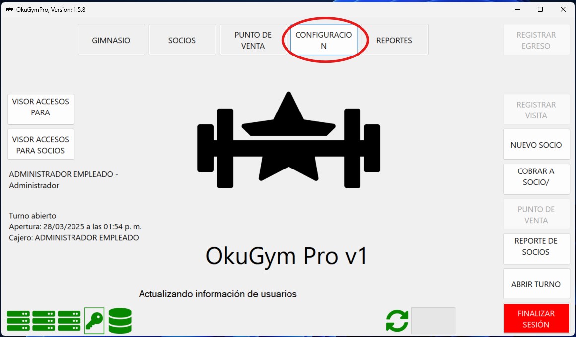 Para configurar el ticket de pago es necesario iniciar sesión con el usuario "ADMINISTRADOR" ya que es el único que tiene los permisos para modificar el ticket de pago, si no sabes como iniciar sesión da clic aquí para ver el proceso.