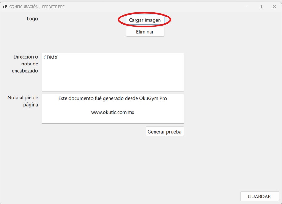 3. En el menú REPORTE PDF da clic en "CARGAR IMAGEN".