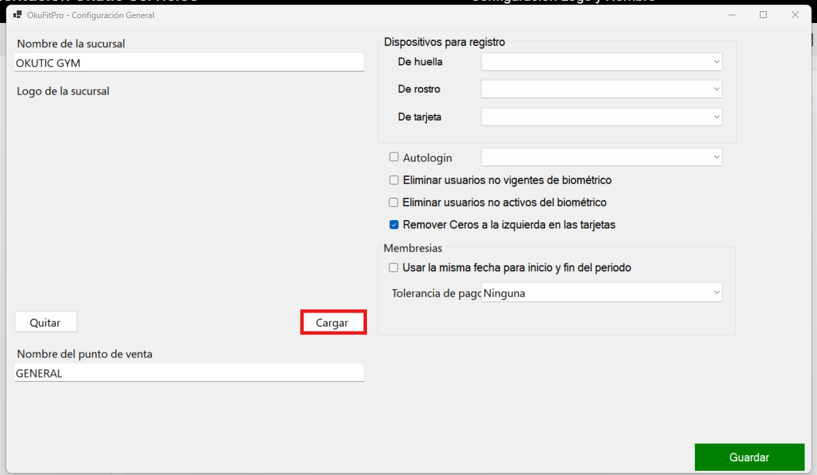 4.Da clic en el botón CARGAR para agregar el logo.