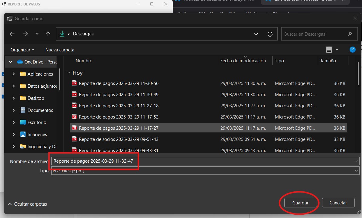 3. Te abrirá una ventana para seleccionar la ubicación donde deseas guardar tu Reporte en PDF.