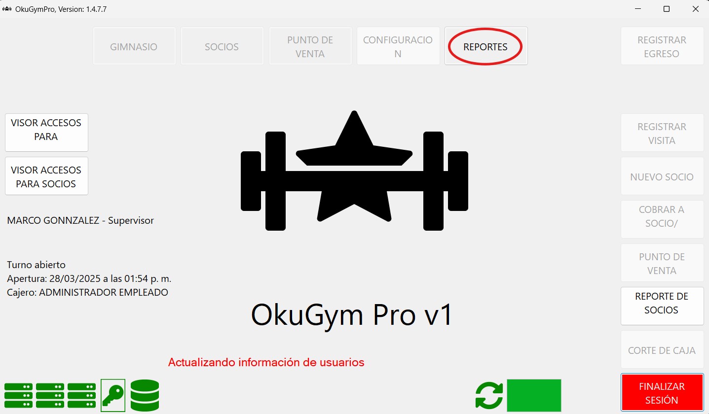 Una vez iniciada la sesión, en el menú principal, da clic en el botón “REPORTES”.