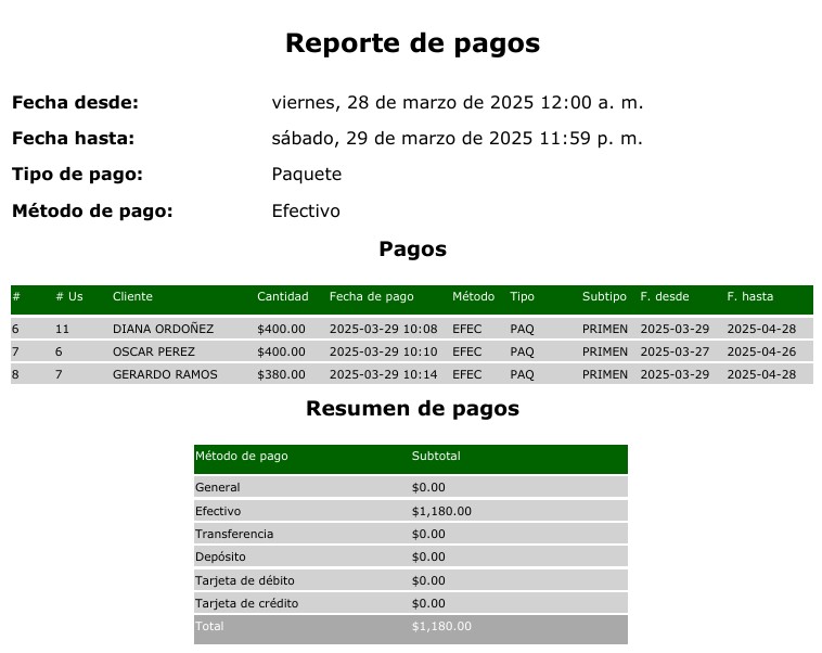 4. Una vez guardado la vista del reporte tiene la siguiente información de los socios .