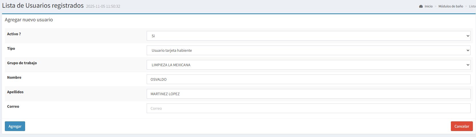 - Grupo de trabajo: “Selecciona el grupo al que pertenecerá el usuario(limpieza, seguridad, entre otros)”