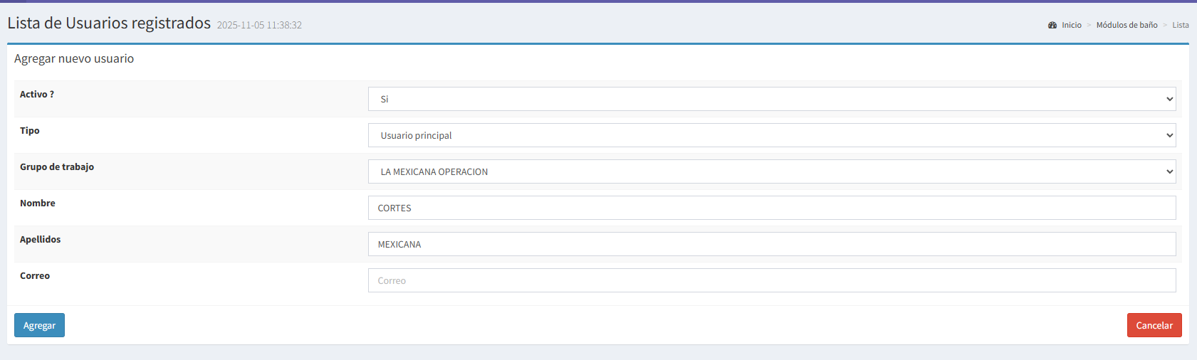 - Grupo de trabajo: “Selecciona el grupo al que pertenecerá el usuario, generalmente son de operación”