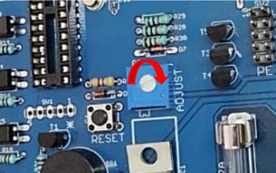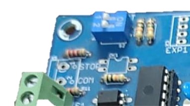 La tarjeta esta programada para realizar un ciclo por pasos mediante los sensores para el acceso, por lo que en la parte final del acceso se cierra mediante el sensor fotoeléctrico, pero en muchos casos puedes omitir este sensor y que se finalice pasado un tiempo que puede ser de entre 0 a 15 segundos. Este tiempo es controlado mediante un TRIMPOT que posee la tarjeta donde al girarlo puedes ajustarlo (figura 3.1).